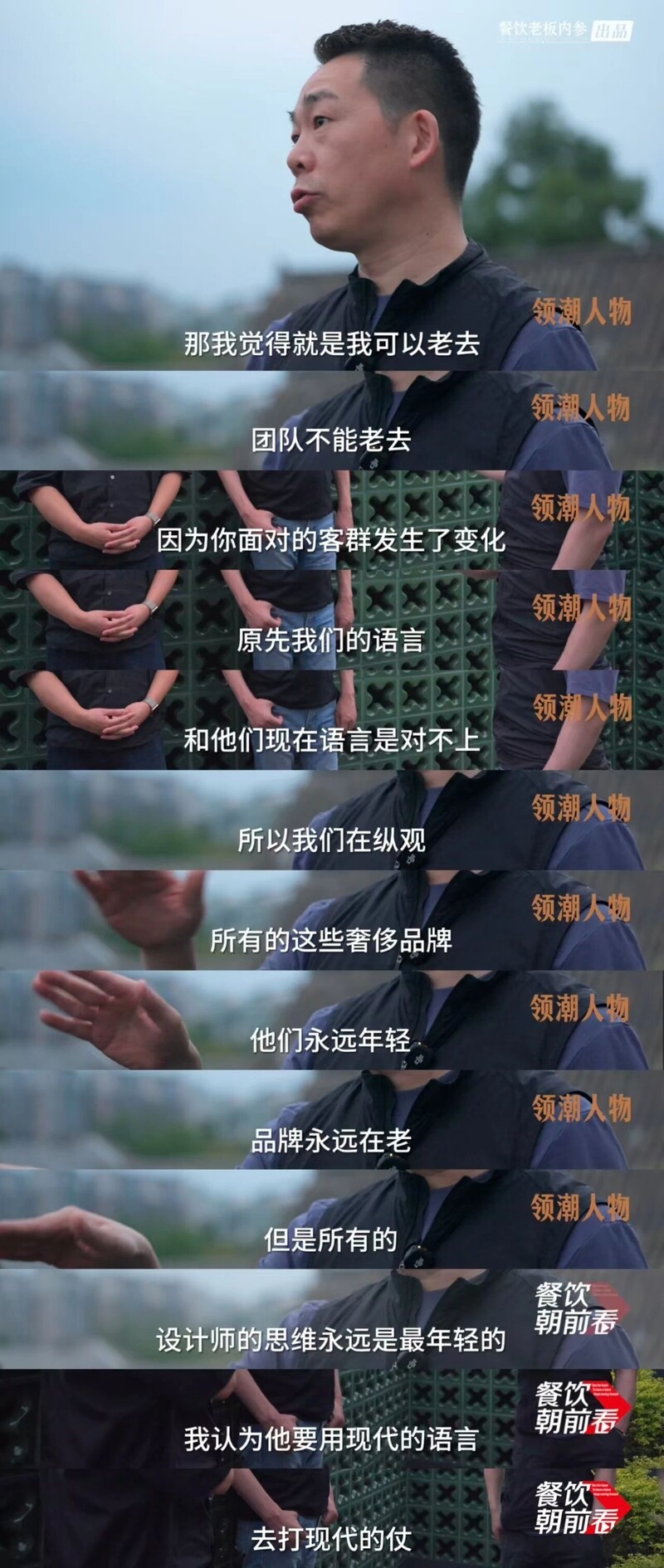 所以,他在节目中这样说道:“一个时代有一个时代的语言和时代的动作,一定要及时的去调整。创始人可以老去,团队不能老去,品牌不能老去。保持年轻的姿态和消费者对话。”