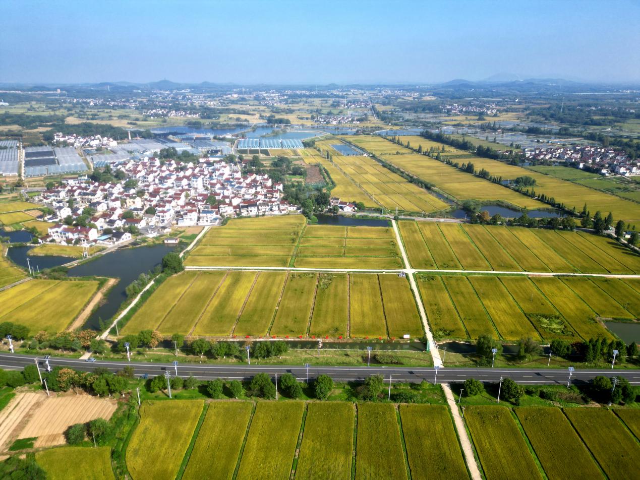 据悉,该街道4.7万余亩水稻丰收在望,金色的田野与美丽乡村仿佛构成一幅美丽图画。