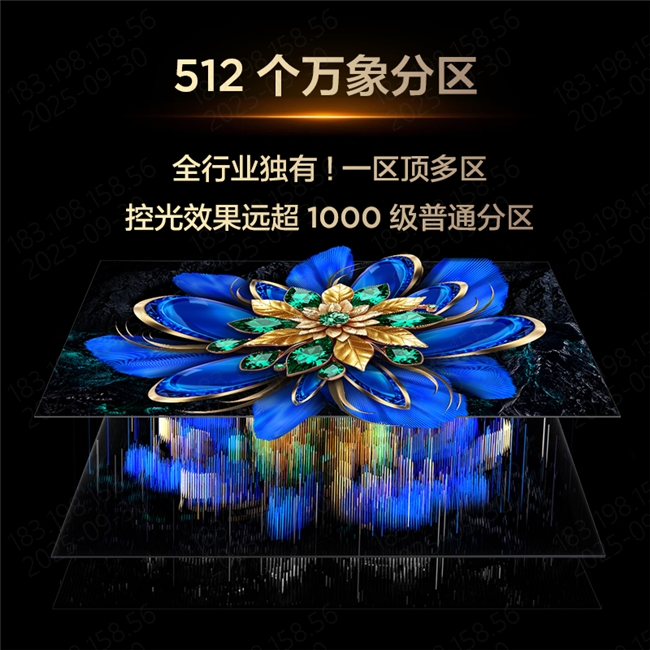 以TCL 98Q6L支持的512万象分区为例,不同于普通电视背光分区,万象分区对发光芯片、透镜技术、OD设计、控光算法和屏幕等七大底层技术实现突破,新一代聚光微透镜和微距OD技术,实现系统级控光,效果是普通分区控光的数倍,达到千级普通分区控光效果。观看时,画面没有泛白与光晕干扰,景物层次分明,光影过渡自然流畅。