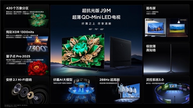 作为全球显示技术龙头的TCL凭借其完善产业链布局与技术领先优势,近日重磅推出超抗光版J9M超薄QD-Mini LED电视,以“纤薄之上,尽享清晰”为产品主张,聚焦抗眩光、高对比度、强控光、超薄贴墙设计等核心技术,再次定义高端大屏电视的画质标准与家居融合美学。