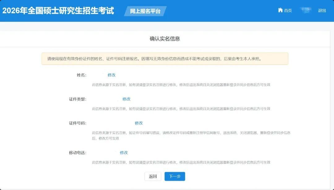 确认实名注册信息后,考生要按照《2026年全国硕士研究生招生工作管理规定》要求填写正确的学历(学籍)信息。