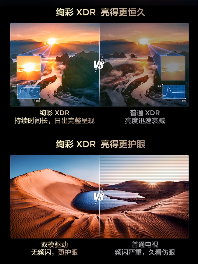 与此同时,TCL 98Q6L具备1300nits的真实峰值亮度,并通过绚彩XDR技术,将高亮度状态维持更长时间,而非转瞬即逝。这使其能更真实地还原现实世界中阳光、火光等高亮场景的细节与冲击力,同时解决了高亮模式下画面易褪色泛白的问题。