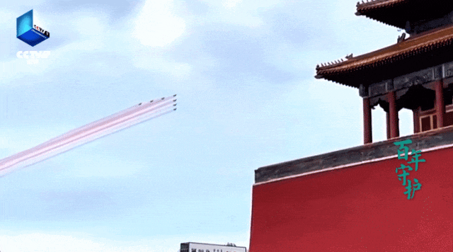 空中护旗梯队飞过天安门广场上空。新华社记者 王婧嫱 摄