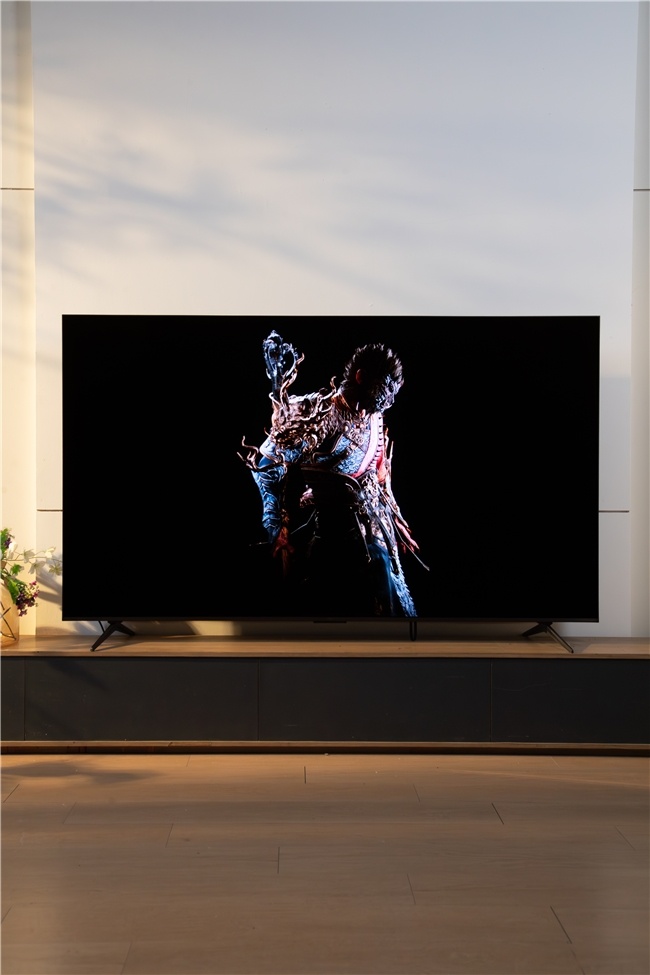 除了核心的抗反光和精准控光,细节设计也特别贴心。灵控3.0系统开机只要0.7秒,还没有烦人的开机广告,我爸妈现在都会自己调桌面布局,找应用、切频道都特别方便;外观上,整机最厚处才60mm,比同档电视薄20%以上,摆在家里就像一块精致的艺术品,不管家里是现代风还是简约风装修,都能完美适配。