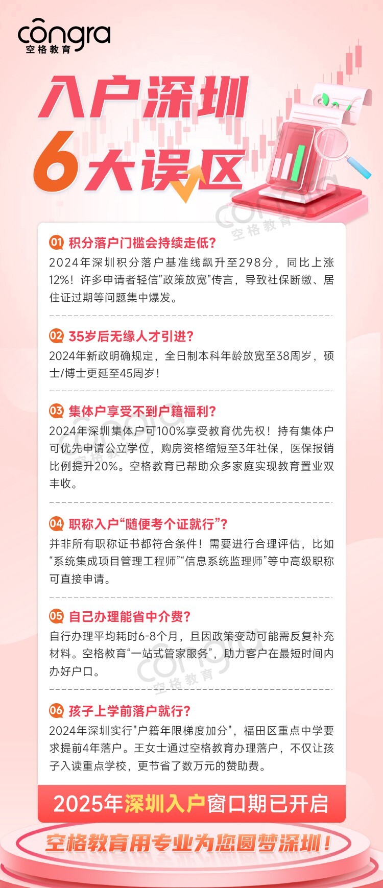 入户深圳是系统性工程,每一个细节都关乎成败。广州空格教育盛世咨询有限公司凭借 700 + 服务团队的专业经验、200 + 师资的政策解读能力,从前期评估到后期落户,全程为你把控细节、规避风险,让你少走弯路、顺利扎根深圳!