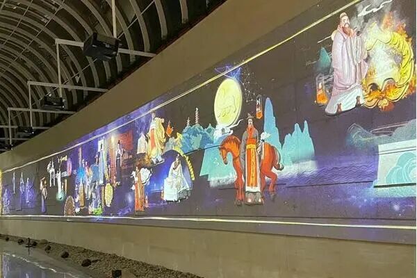 镇江博物馆实施的《镇江三千年》数字化浮雕墙项目,在原有“镇江三千年”浮雕墙基础上,通过三项核心技术创新实现升级:AR与数字投影深度融合,精准投射数字化内容至弧形墙面;多台投影机协同呈现无缝画面;定制8K横向分辨率高清动画适配巨幅投影,让历史人物形象更鲜活。