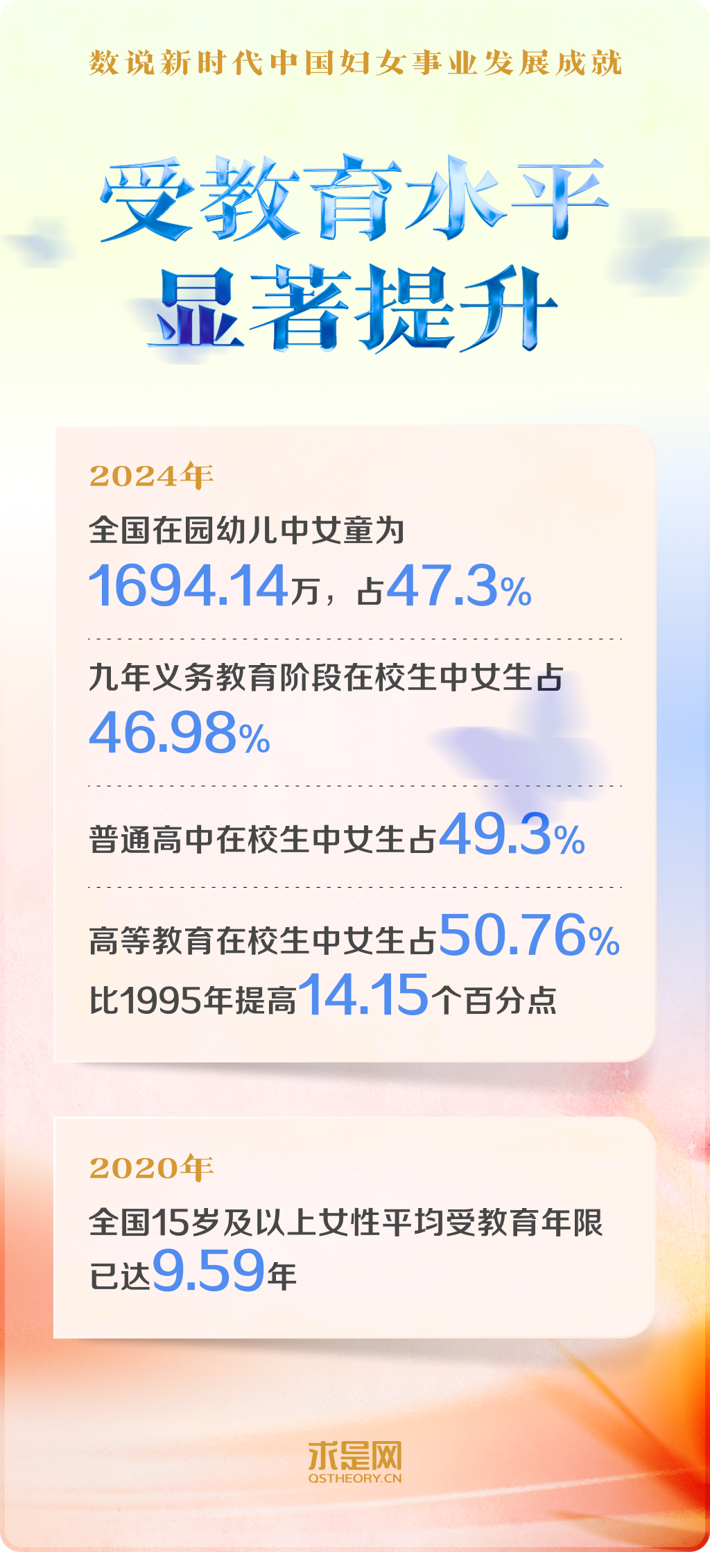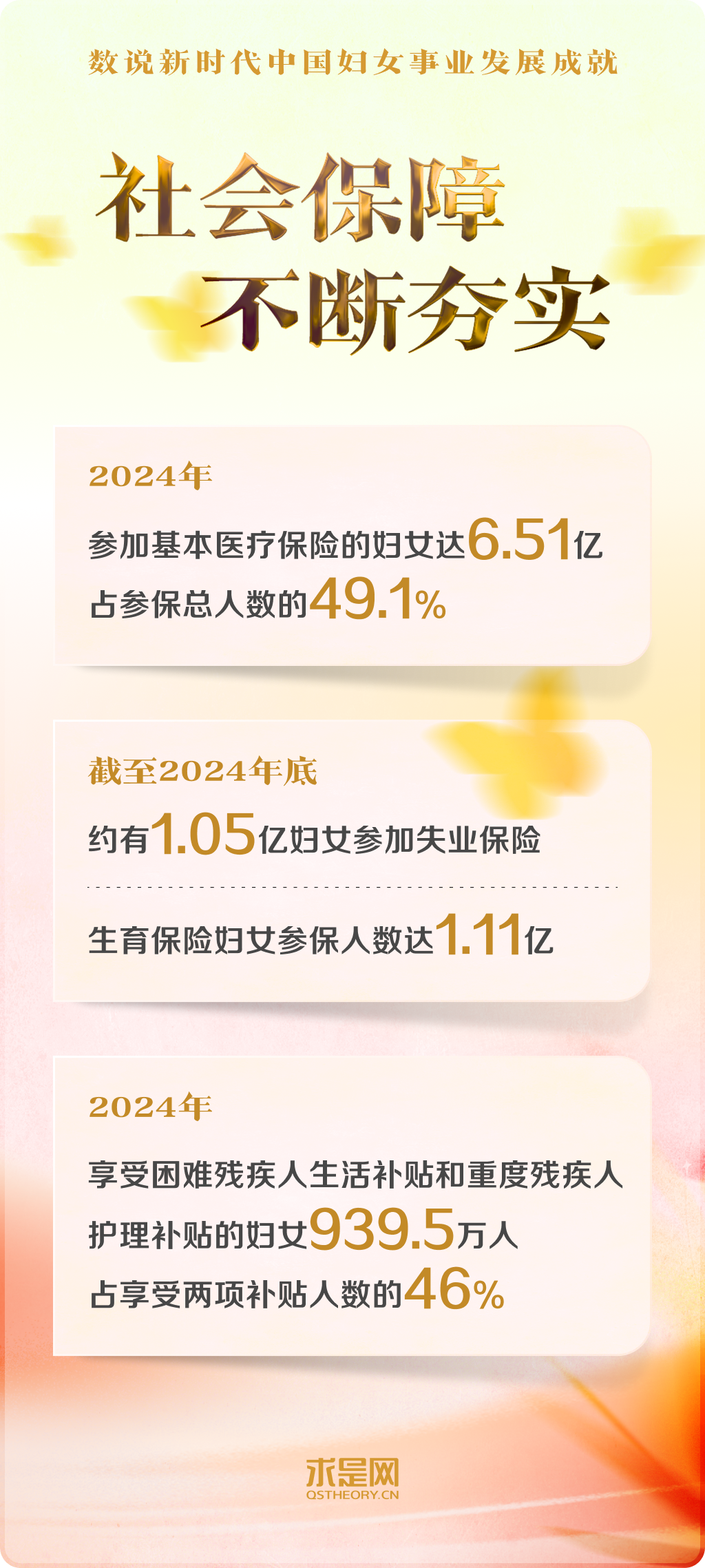 党的十八大以来,以习近平同志为核心的党中央把保障妇女合法权益、促进男女平等和妇女全面发展,作为中国式现代化的重要内容,对妇女事业发展作出一系列开创性、全局性、长远性的重大决策部署。中国在幼有所育、学有所教、劳有所得、病有所医、老有所养、住有所居、弱有所扶上持续用力,不断实现广大妇女对美好生活的向往。一组组数字,记录下新时代中国妇女事业跨越式发展的重大成就。