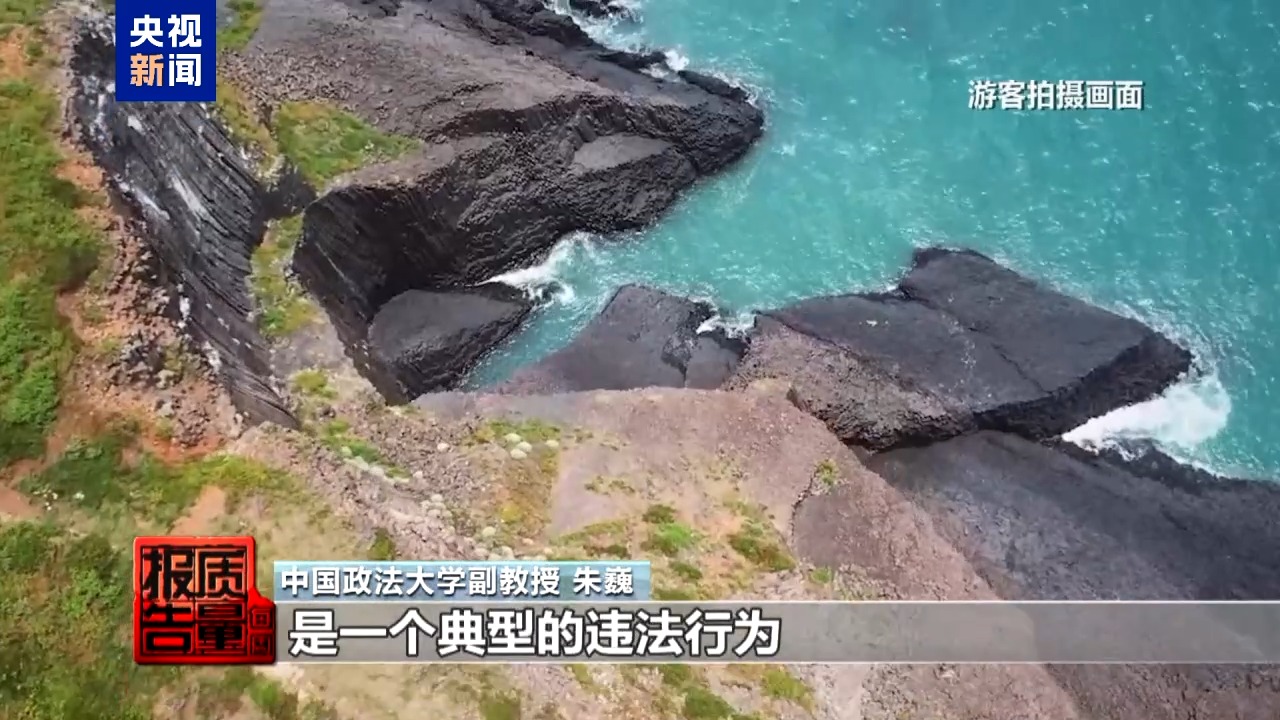 中国地质大学(北京)地球科学与资源学院教授 张绪教:游客上岛以后,他们攀爬到柱状节理上边,对柱状玄武岩造成破坏,这种物理破坏是不可逆的。