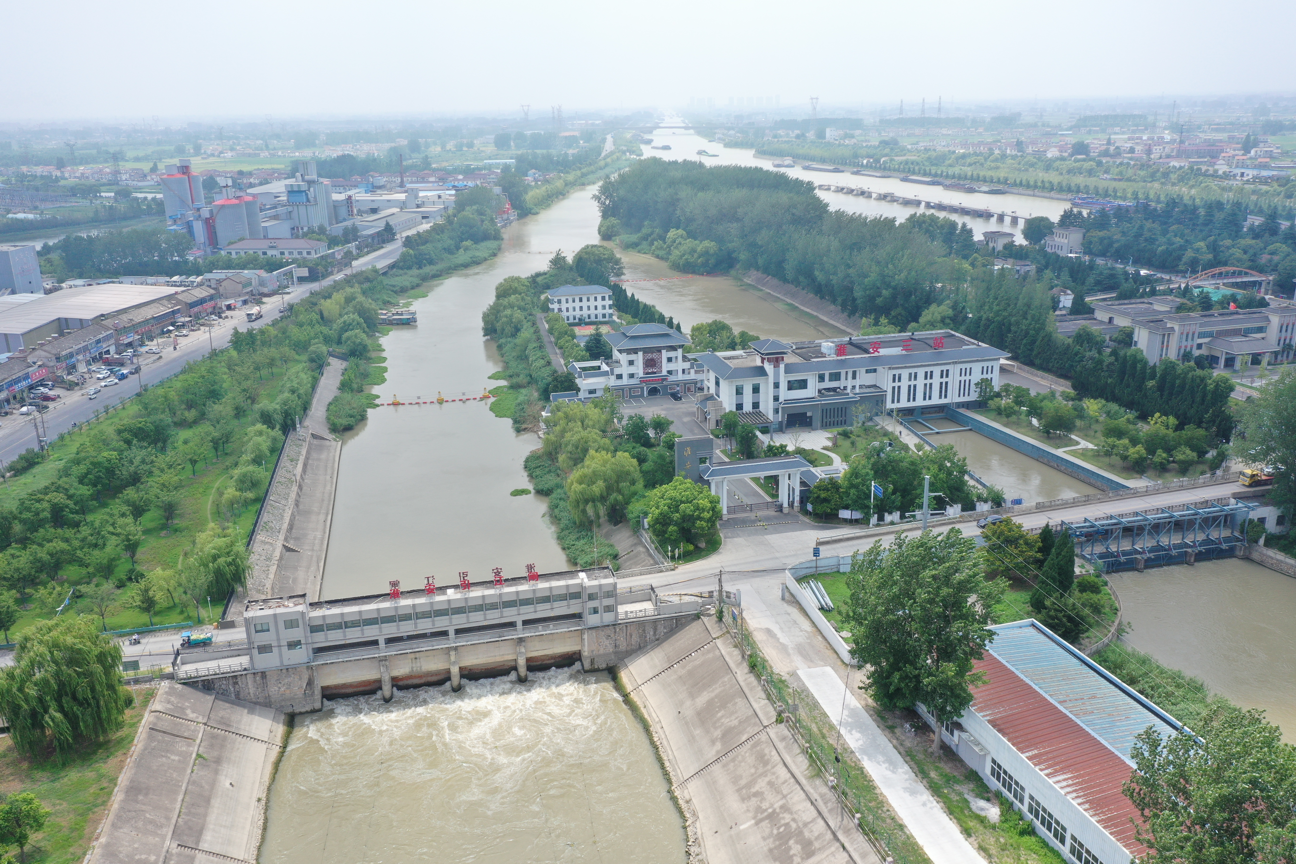从高空俯瞰,江都水利枢纽如同一串绿色的岛链,4座泵站连接4座绿色小岛一字排开。一座座水闸的启闭,直接关系着水的流向走势、人民生命财产的安全。作为新中国成立以来第一座拥有完全自主知识产权的大型泵站群,江都水利枢纽是全国跨流域、远距离、大流量调水的先行实践典范,除保障航运外,还具有抽江北送、自流引江、抽排涝水、分泄洪水、余水发电、改善生态环境等六大功能。