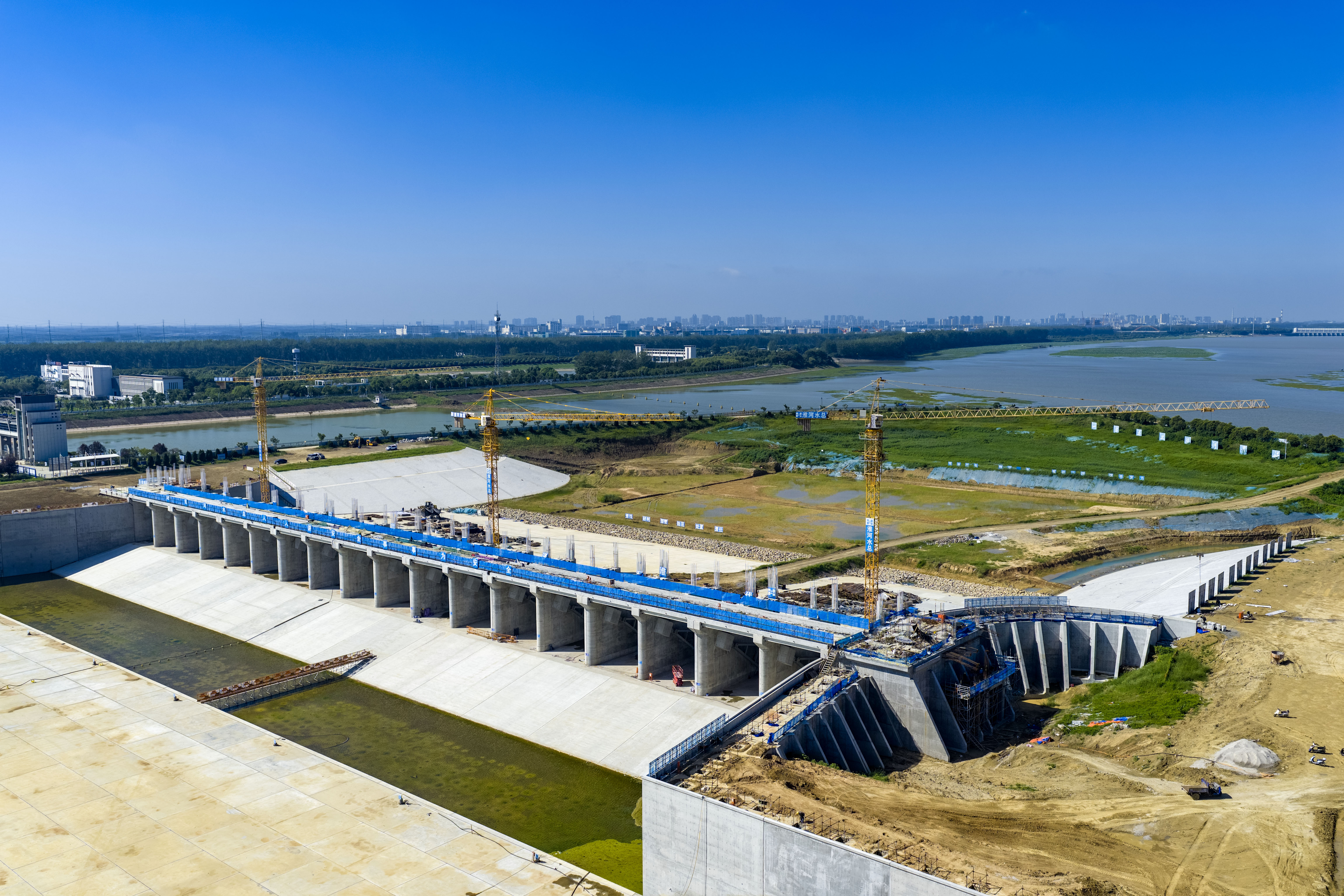 2025年8月16日,淮安,淮河入海水道二期二河枢纽施工现场一片忙碌。张照久 摄