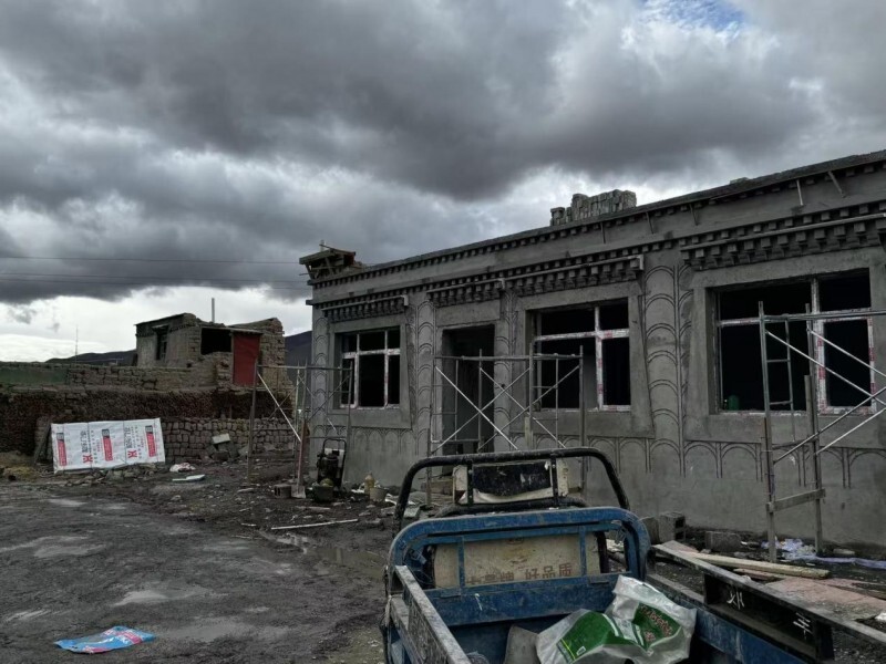 远方为村民地震前的土房,近处为地震后搭建中的新房屋