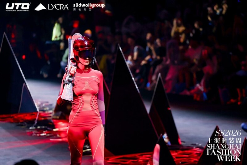 值得关注的是,UTO 悠途的跨界并非偶然,而是基于对产业趋势的精准判断。当前,中国户外运动产业规模持续扩大,2024 年相关消费市场已展现出强劲增长潜力,但 “专业装备与大众需求脱节” 仍是行业痛点。为此,UTO 通过整合全球优质资源 —— UTO本次大秀的合作矩阵堪称亮点。品牌携手全球纤维科技领导者LYCRA®(莱卡®)品牌与与享有盛誉的Südwolle Group (德国南毛集团)品牌,共同打造这场科技与美学的盛宴。南毛集团作为全球知名的全羊毛和羊毛混纺类精纺纱线供应商,其高品质的天然原料为UTO产品带来了绝佳的亲肤触感与环保属性;而LYCRA®(莱卡®) 纤维提供的卓越弹性与持久舒适度,则确保了时装化设计的同时不失运动所需的自由感;此外,UTO贴身层更有THERMOLITE® ALL SEASON纤维的加持,其创新型纤维结构可以感应微环境变化, 保暖控湿,为穿着者提供全天候的温暖舒适的穿着体验。THERMOLITE® 品牌作为全球领先的轻质保暖科技品牌,致力于为消费者提供温暖、干爽与舒适的穿着体验。