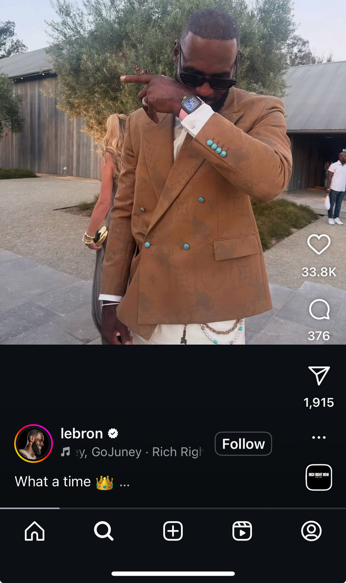 Fanatics Fest是一个为体育迷、粉丝、运动领域收藏家打造的线下社群活动。借助这次亮相,“詹皇”本人也在海外社交媒体Instagram上发布了这款联名款腕表。截至界面新闻发稿前,詹姆斯在该社媒上的粉丝数有300万人。