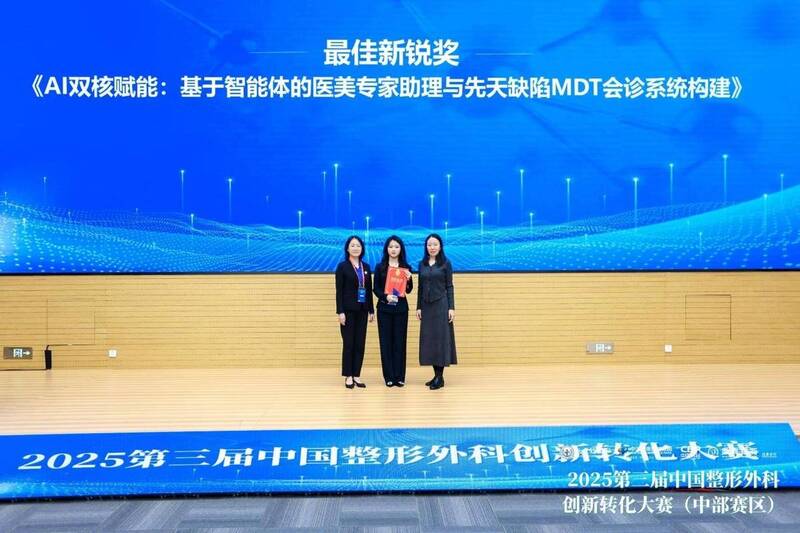 最佳新锐奖:《AI双核赋能:基于智能体的医美专家助理与先天缺陷MDT会诊系统构建》;颁奖嘉宾:张敏、贾垚