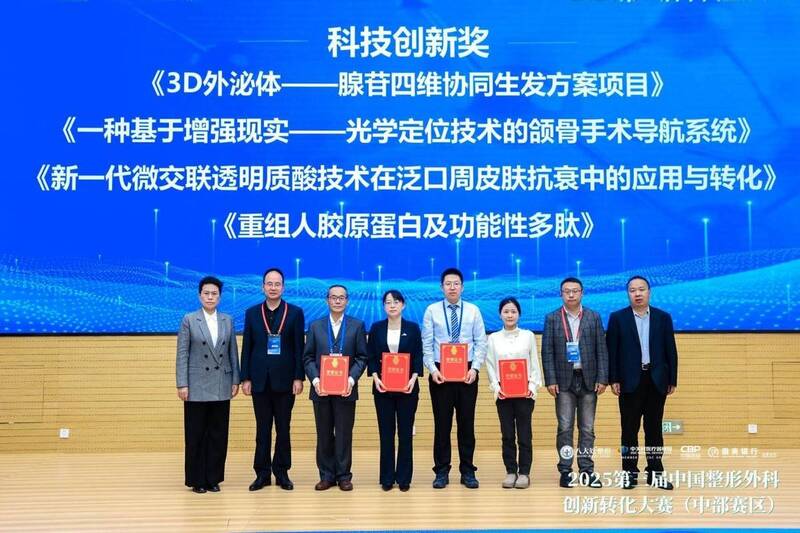 科技创新奖:《3D外泌体——腺苷四维协同生发方案项目》《一种基于增强现实-一光学定位技术的颌骨手术导航系统》《新一代微交联透明质酸技术在泛口周皮肤抗衰中的应用与转化》《重组人胶原蛋白及功能性多肽》