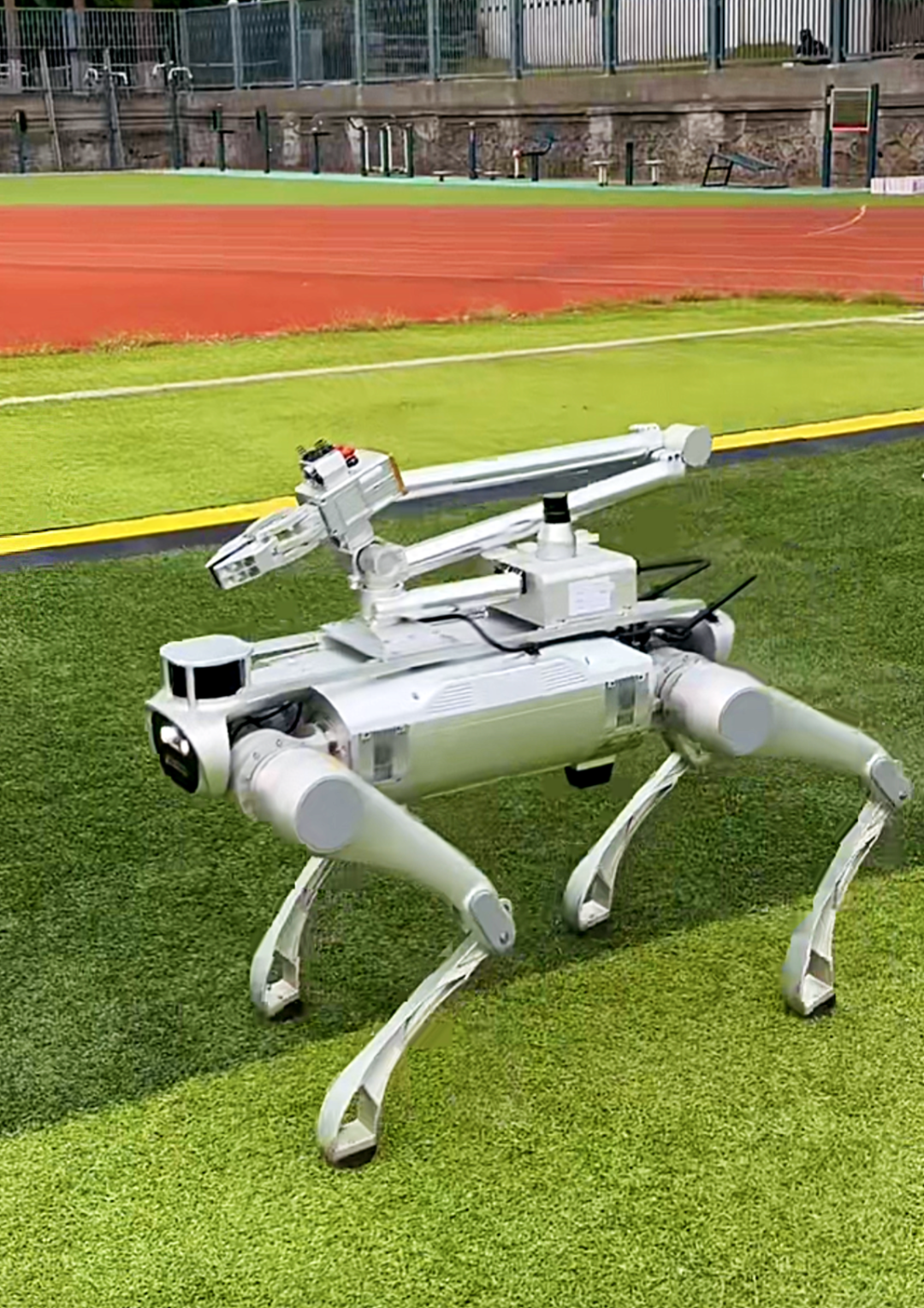 全身银色,长着一对大大的“眼睛”,身高只有72厘米,动作却相当稳健灵巧,这是南京公安参与研发的警用机器狗。这只“警犬”和它的搭档“天魁1号”防爆人形机器人组团,成为“大思政课”现场安全的“科技助手”。