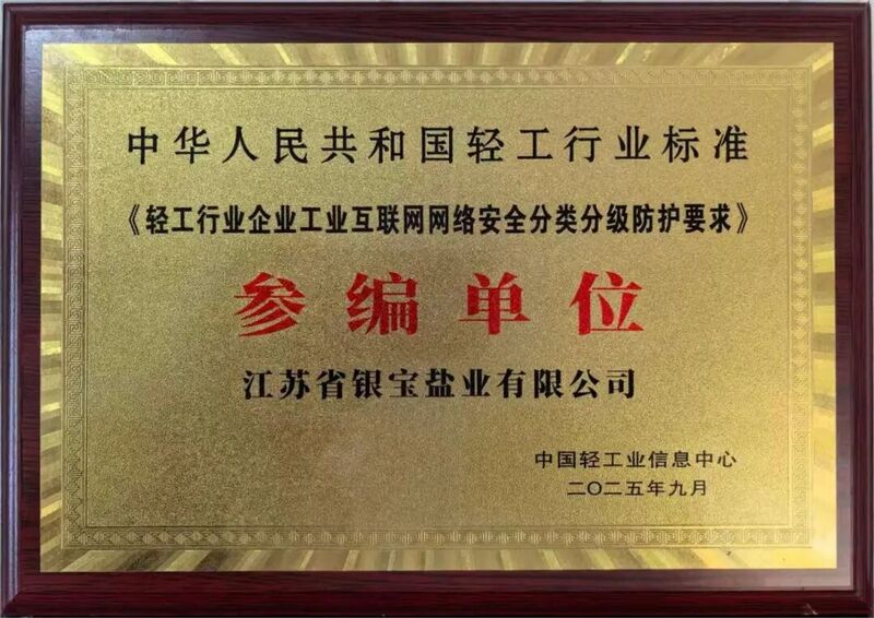 作为《轻工行业企业工业互联网网络安全分类分级防护要求》参编单位,银宝盐业深度参与行业安全标准的制定工作,与多方企业协同推动轻工行业网络安全体系的规范化建设,为构建安全可靠的行业数字化生态贡献了重要力量。