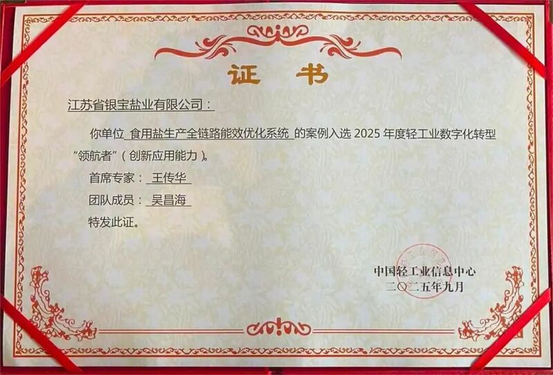 新华报业网讯 近日,以“AI赋能 消费焕新”为主题的第十五届中国轻工业信息化大会在北京隆重举办,大会正式发布《2025年度轻工业数字化转型“领航者”案例名单》,银宝盐业公司“食用盐生产全链路能效优化系统”案例成功上榜。