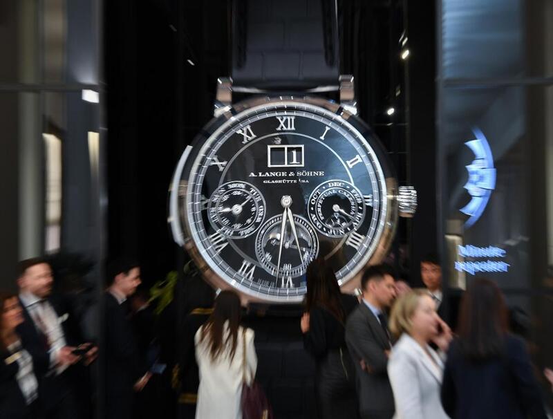 4月1日,人们参观在瑞士日内瓦举行的“钟表与奇迹”高级钟表展。新华社记者连漪摄
