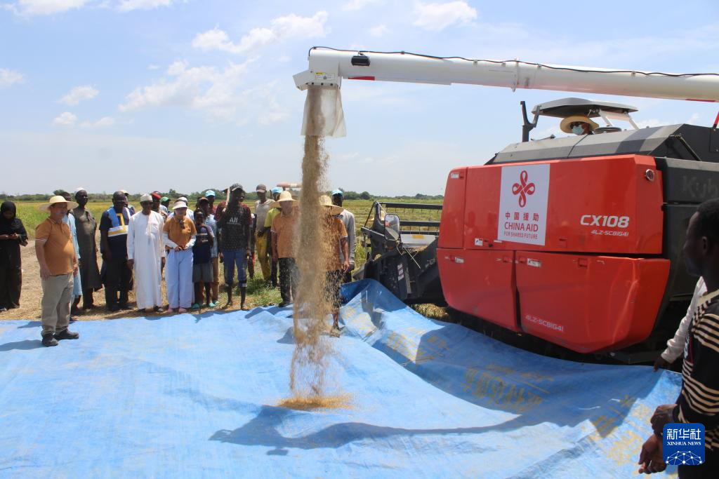 清晨,太阳升起,金色的光芒洒在乍得哈杰尔-拉米斯省杜吉亚区的米代金村。稻田里,金黄的稻穗随风摇曳,几台崭新的收割机犹如小船驶入金色海洋,轰鸣声与农民的欢声笑语交织。