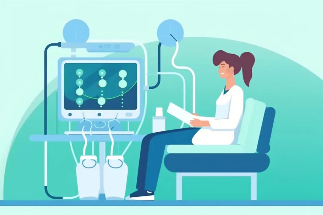 治疗前,护士会先核对患者信息,用生理盐水冲洗透析管路和透析器,确保设备无菌;接着对血管通路部位(如内瘘手臂)进行消毒,然后穿刺内瘘(或连接中心静脉导管),将患者的血液通过无菌管路引入透析机。
