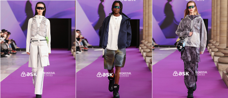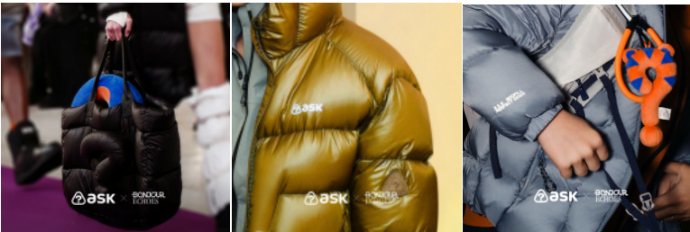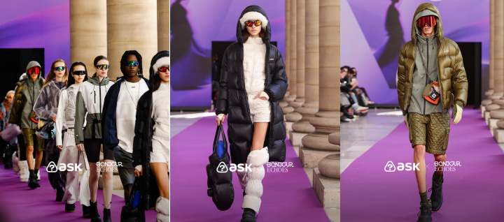 作为本次Bonjour Echoes特别呈现品牌,ask每一款作品都极具用心,本次发布的「时尚漫游者系列」,从建筑理性美学与户外机能中汲取灵感,诠释都市与自然交织的穿衣哲学。Ask独创暖呼吸热平衡专利、反光科技印花与建筑感立体剪裁,兼顾功能与风格,以雕塑轮廓打破常规,陪伴年轻人在城市与山海之间自信探索,书写自我风格宣言。