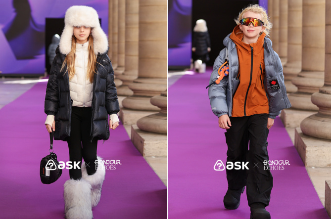 2025年10月4日,ask junior作为巴黎时装周中国首个官方受邀的童装品牌,于巴黎布隆尼亚宫“Welcome to Paris”开幕大秀完成首秀。ask junior携手前Fendi、Moncler设计师Celine Petit,联名发布鹅绒服系列,不仅彰显出卓越的时尚表现力,也向世界发出属于中国童装的自信问候。