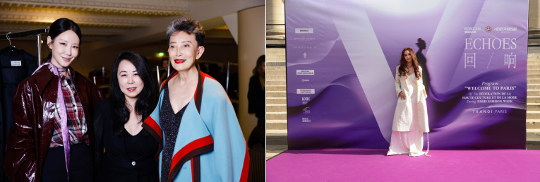 当日秀场高朋满座,星光熠熠。在“金牌模特教母”韩颖华的领衔开场中拉开帷幕——凭借独到眼光,她曾一手培养出杜鹃、吕燕、李艾等国际超模,彰显中国模特力量的深厚底蕴。特邀嘉宾知名演员温碧霞亦亲临现场,与著名时尚博主左岸潇同台亮相,共同展现中国时尚在国际舞台上的新锐风貌。