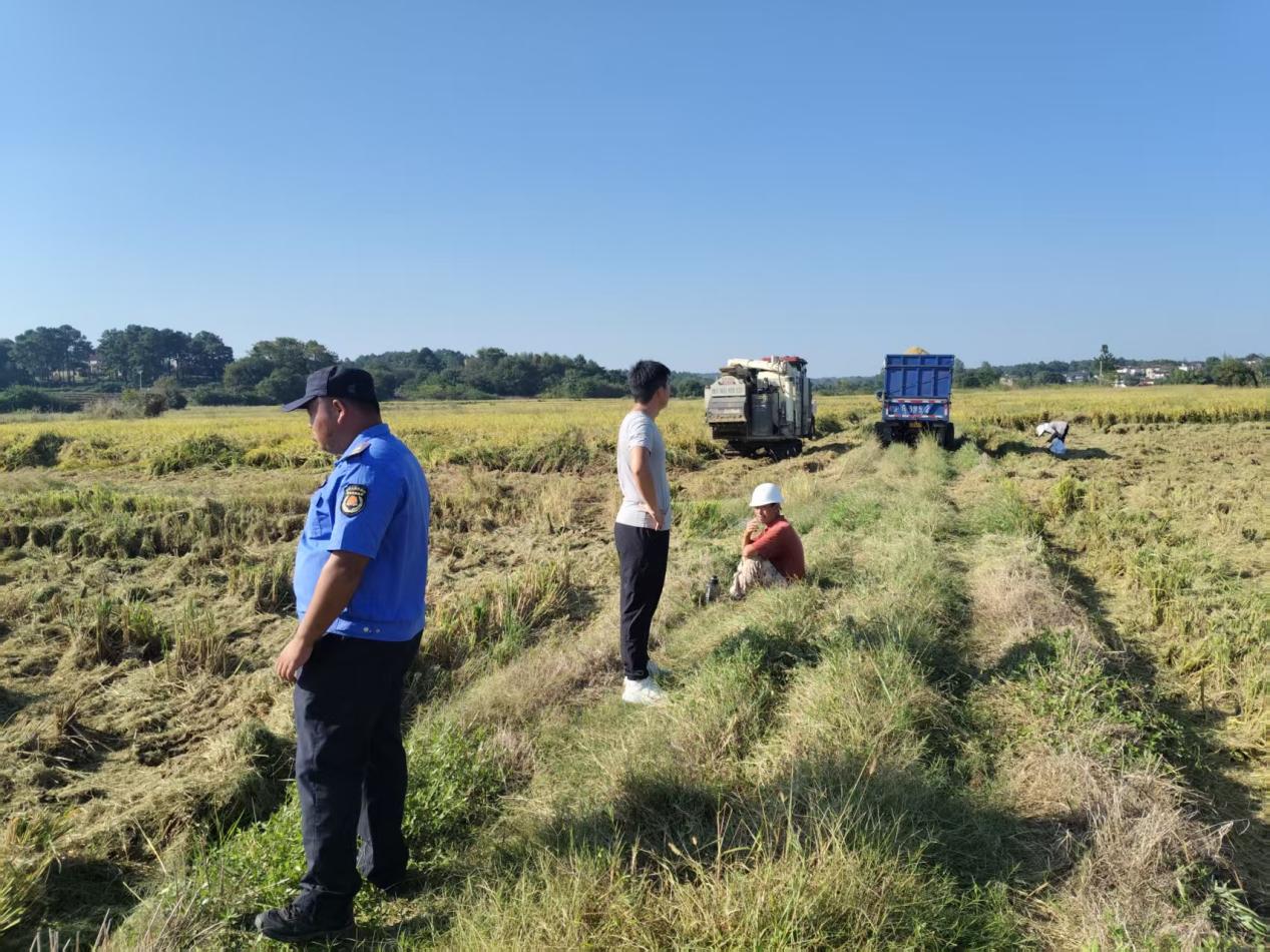 走进这片丰收的稻田,只见承包户们脸上洋溢着幸福的笑容,然而,丰收的喜悦背后,离不开安全守护的坚实保障。为了确保稻田的安全,执法人员严格执法,青山村应急网格员发挥熟悉地形优势及时排查隐患,志愿者则积极宣传引导,三方分工协作、默契配合,为稻田安全保驾护航。