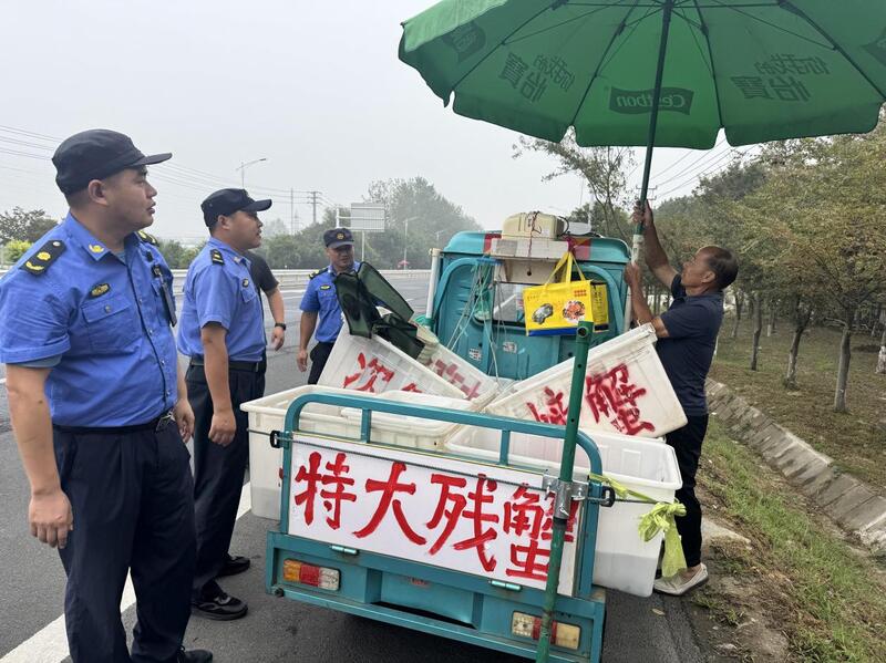 记者了解到,近期部分螃蟹经营户为招揽顾客,将摊位随意设放在主次干道、小区出入口等区域,不仅阻碍了行人车辆正常通行,其经营过程中产生的污水、废弃蟹壳等也严重影响了周边环境卫生,存在安全隐患。为解决这一问题,固城街道综合行政执法大队精准施策,开展了此次专项整治。