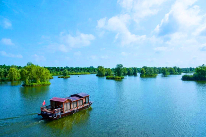 纵横交错的水域中,眼子菜、金鱼藻等沉水植物默默净化水质;挺水植物芦苇、香蒲在岸边摇曳生姿,为水生生物提供庇护;水面上的莲花竞相绽放,吸引着蜜蜂、蝴蝶穿梭其间……