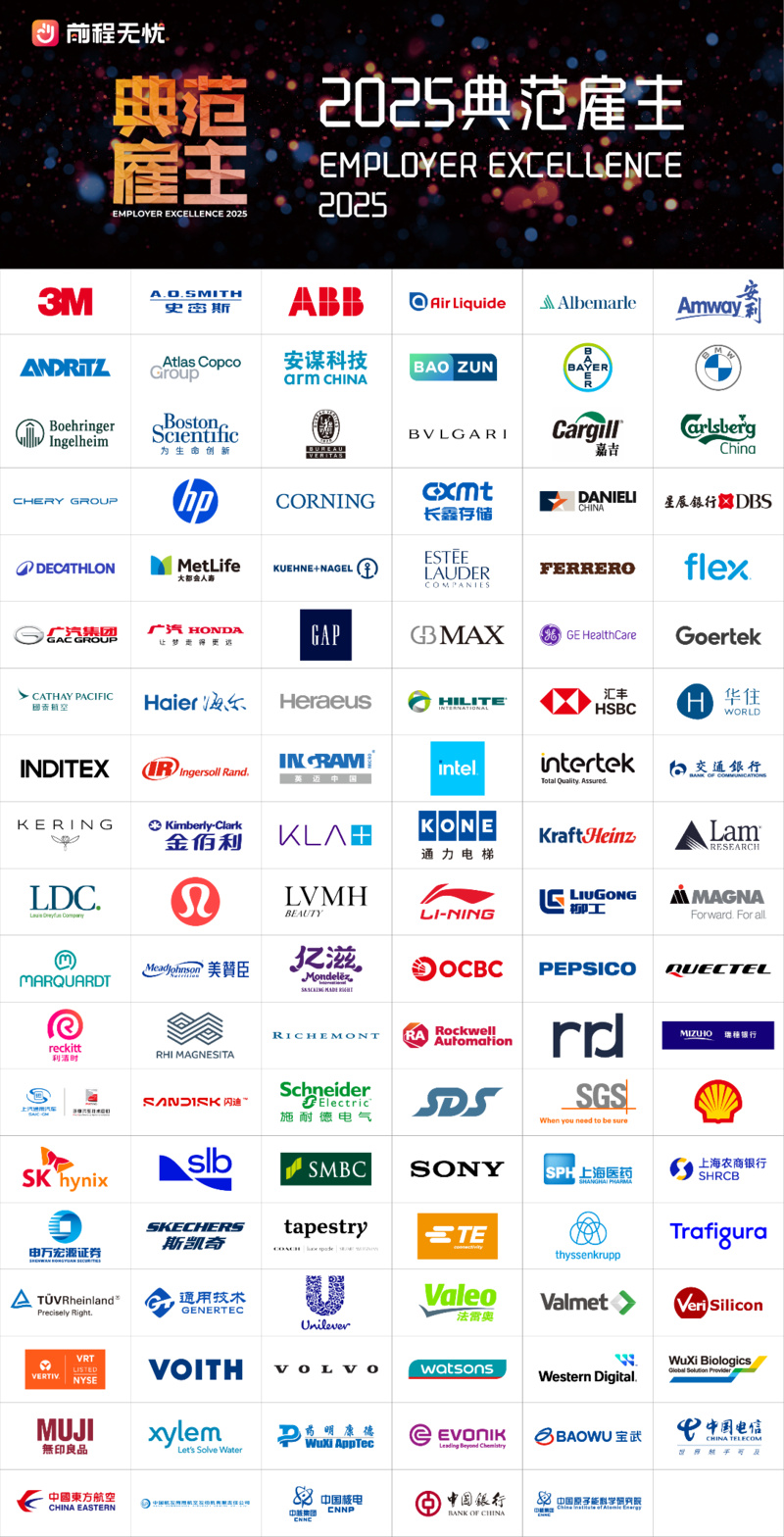 10月15日,中国领先的人力资源服务商前程无忧51job正式发布2025年度典范雇主榜单。