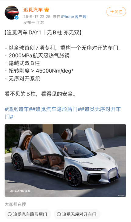 8月28日,追觅科技正式宣布进军新能源汽车领域,甚至放言要打造“世界上速度最快的车”,并且对标“布加迪的豪华超跑”“劳斯莱斯库里南的超奢SUV”。