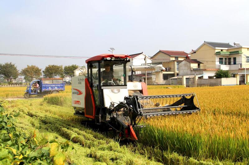 据悉,金秋时节,桠溪街道4.7万余亩水稻喜获丰收,连日来,该街道新墙、桠溪、永胜等村,每天投入上百台收割机及运输车辆加紧收获丰收水稻,确保颗粒归仓。