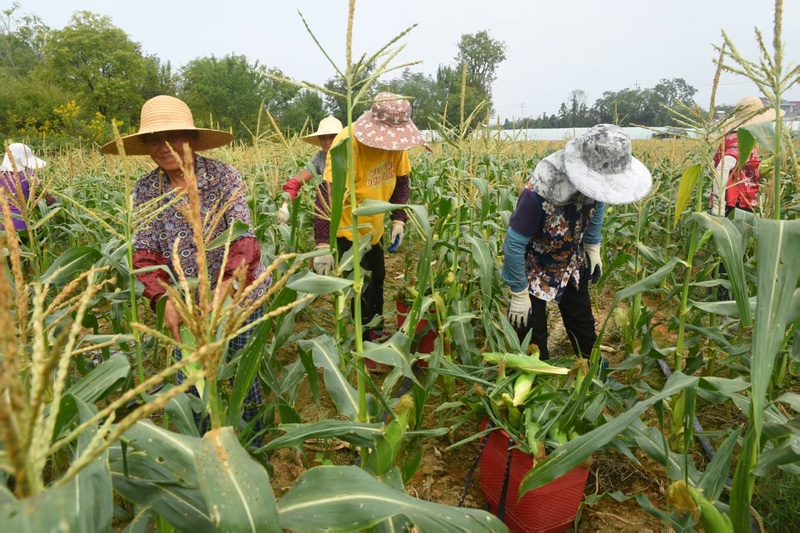 “这可是我们村的‘金棒棒’!”10月15日,正在采摘的村民李大姐高兴地说道。据笪村第一书记邓季夏介绍,这片田地邻近新桥河水系,过去梅雨季节常常被淹,每亩租金仅150元。今年,笪村通过党总支领办合作社,对这片易淹田地进行了流转,今年对这片易淹田地进行了彻底整治后,全部种植了“雪甜7401”牛奶玉米,该品种牛奶玉米甜度高、淀粉含量低,既可生食又可蒸煮,是目前市场上最甜的玉米品种。
