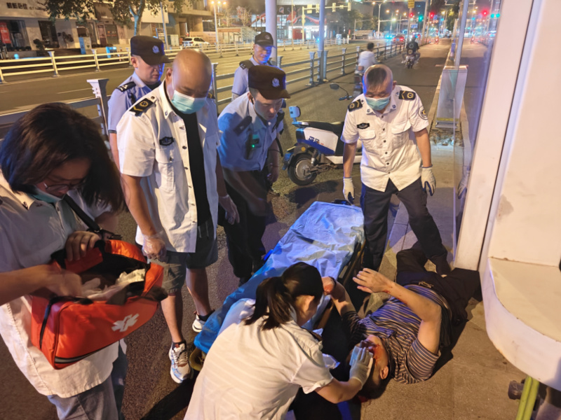 几天前,镇江京口区一男子醉酒倒地,面部摔伤出血,巡逻警力发现后,利用车上设施迅速开展先期处置,急救、止血、清理创口,直至救护车赶到。由于处置及时,伤者很快痊愈出院。