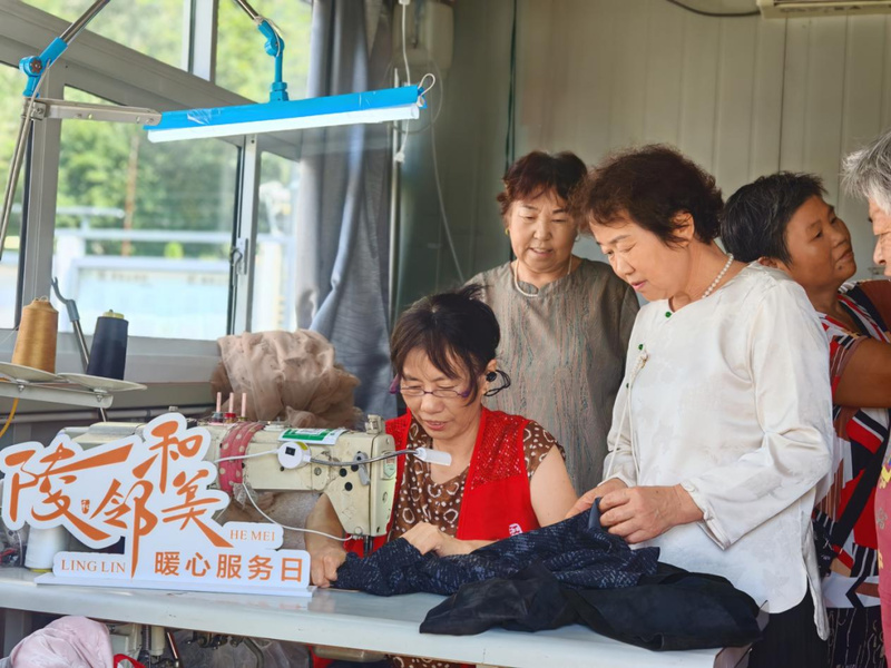 “您这件衣服换个拉链还能穿!”在每月20号,季阿姨雷打不动地坐镇便民服务站,免费为邻里缝补衣物、修改裤脚。一台缝纫机、一张椅子,熟练地穿针引线,咔嚓嚓地踩着缝纫机踏板,为居民们解决衣服修改和缝补的难题。看着缝纫机落针的过程,熟悉的场景犹如回到旧时光。“这边附近都没有缝补的地方,衣服要缝补的话得去老城区,要半个多小时,现在这个活动太方便了”一位居民说到。
