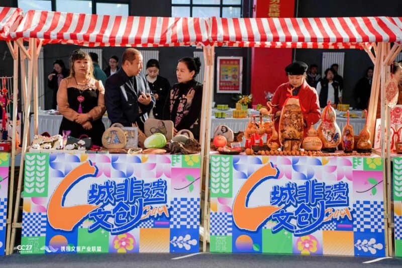 大会现场还搭建了文创非遗展区,来自全国C牌城市的文旅企业或手艺人带来了丰富的文创、非遗、文旅宣传资料等展品。其中石河子市带来了葫芦烙画、剪纸、编织等展品。青海省海北藏族自治州带来了原子城徽标、钥匙扣、书签等文创产品。“我们背靠祁连山,面朝青海湖,拥有金色门源、天境祁连、河清海晏、中国原子城等一批文化旅游名片,全国C牌城市齐聚在石河子,作为青海省的C牌城市,希望能和各省C牌城市一同打造成旅游联盟,进一步带动海北州文旅产业发展。”青海金银滩旅游产业发展有限责任公司董事长闫斌表示。