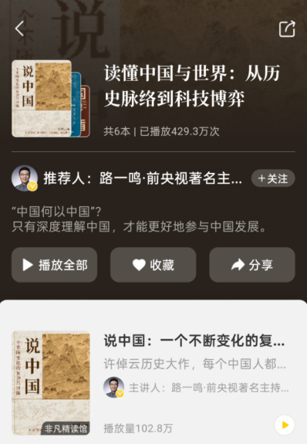 帆书APP帆书非凡精读馆板块精选6本好书,带你重新读懂中国与世界好书,由前央视著名主持人路一鸣老师主讲,将厚重知识转化为易懂的听觉盛宴,为大众搭建起深度理解中国的认知桥梁,让备考不再止步于刷题。
