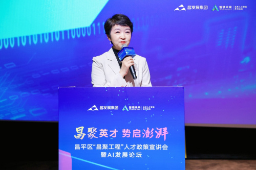 2025年10月15日,昌平区“昌聚工程”人才政策宣讲会暨AI发展论坛在昌发展·龙域中心成功举办。昌发展集团总经理王颖、昌平区人才工作局高地建设科科长邵占维、清华校友总会AI大数据专委会执行秘书长张芮祺、昌发展股份总经理助理金明等嘉宾出席活动。现场汇聚了来自产业界、学术界、投资界及创新企业的近100位代表,共同围绕AI技术趋势、产业落地与人才政策展开深度探讨。