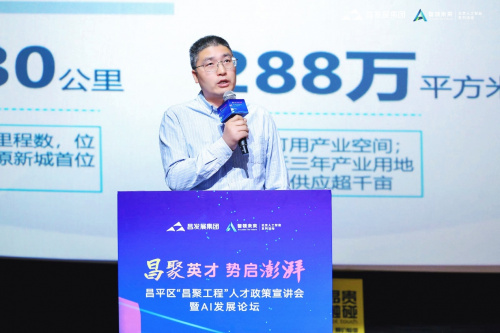 昌发展股份产业发展中心招商经理姜奎围绕《基地、基金、产服,构建AI产业生态平台》进行主题分享。他表示,昌发展作为昌平区属国资平台,致力构建“基地+基金+产服”一体化产业生态平台。昌发展围绕“数字经济、生物医药、智能制造、能源科技”等区域重点产业方向进行布局。运营超百万平米产业空间并成功引进千余家优质企业。基金方面,昌发展通过汇集汇集中央、北京、昌平三级财政资金,目前累计投资项目超过1100个。同时打造一站式产业服务体系,涵盖政策、金融、技术、人才等全周期服务要素,致力于为企业发展整合多品类、多维度的赋能资源。