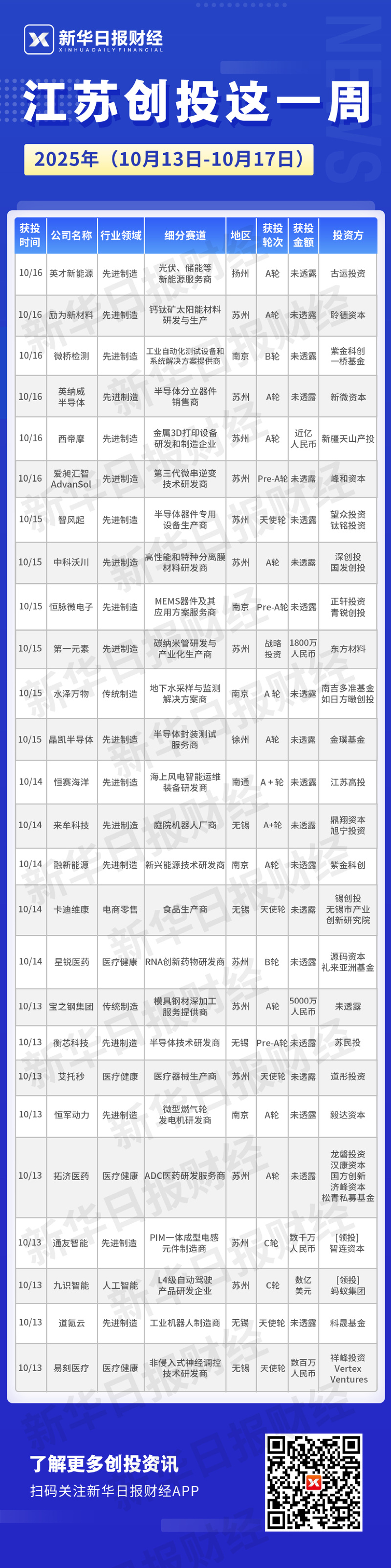 江苏本地产业基金方面,苏州新创未来股权投资合伙企业(有限合伙)于本周正式成立,由苏州创新投资集团、苏州国有资本投资集团等共同出资,规模达171.5亿元。该基金将重点投向电子信息、生物医药、高端装备制造等硬科技领域,并可能为后续与社保基金合作的500亿元基金项目做前期准备。值得注意的是,苏州创新投资集团管理规模已超2600亿元,近年来在新能源、人工智能、半导体等赛道布局密集,2024年发起的73只科创基金总规模近千亿元。