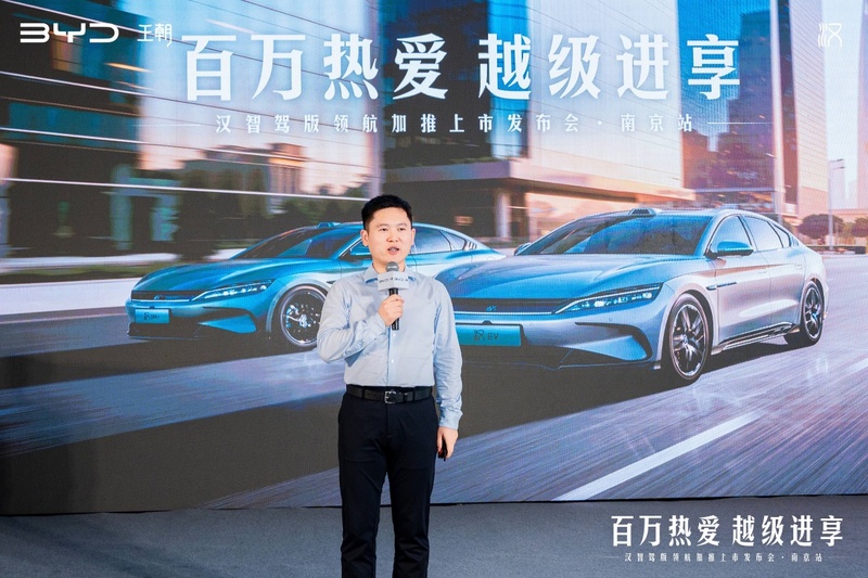 南京大区运营经理李珂对两款新车进行了详细的解析,介绍了双车在设计哲学与技术平台上的核心优势,阐述了汉EV作为纯电旗舰的纯粹驾控底蕴,以及汉DM-i作为插混旗舰在续航与效能上的全能表现。