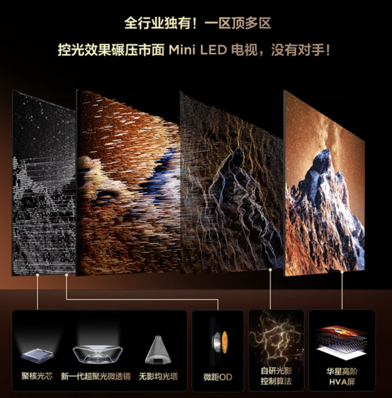 TCL X11L的分区和亮度表现也重新定义了Mini LED电视的性能上限。拥有超过20000个分区,且是可以实现“一区顶多区”精细化控光的万象分区,这不仅是行业极致,更意味着对背光的控制达到了“显微镜”级别,完美解决光晕现象,使物体边缘清晰利落,画面细节纤毫毕现。