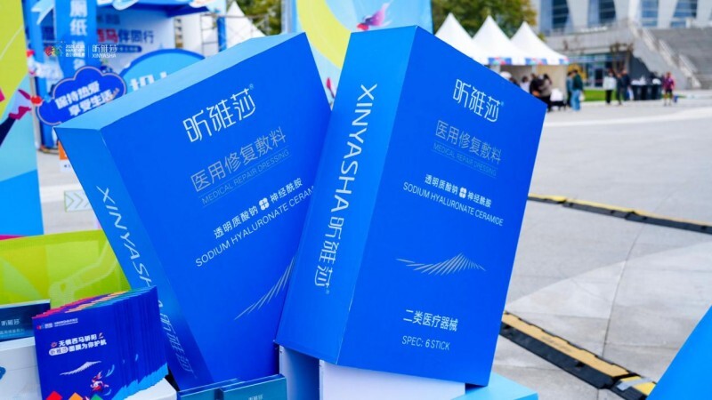 长跑后毛孔张开,紫外线的辐射导致肌肤出现泛红刺痛。惠普生物昕雅莎敏锐捕捉到这一类运动后的护肤痛点,为本次参赛的跑者都配备了昕雅莎医用修复敷料参赛礼,让每位跑者都能轻松应对跑后肌肤问题。