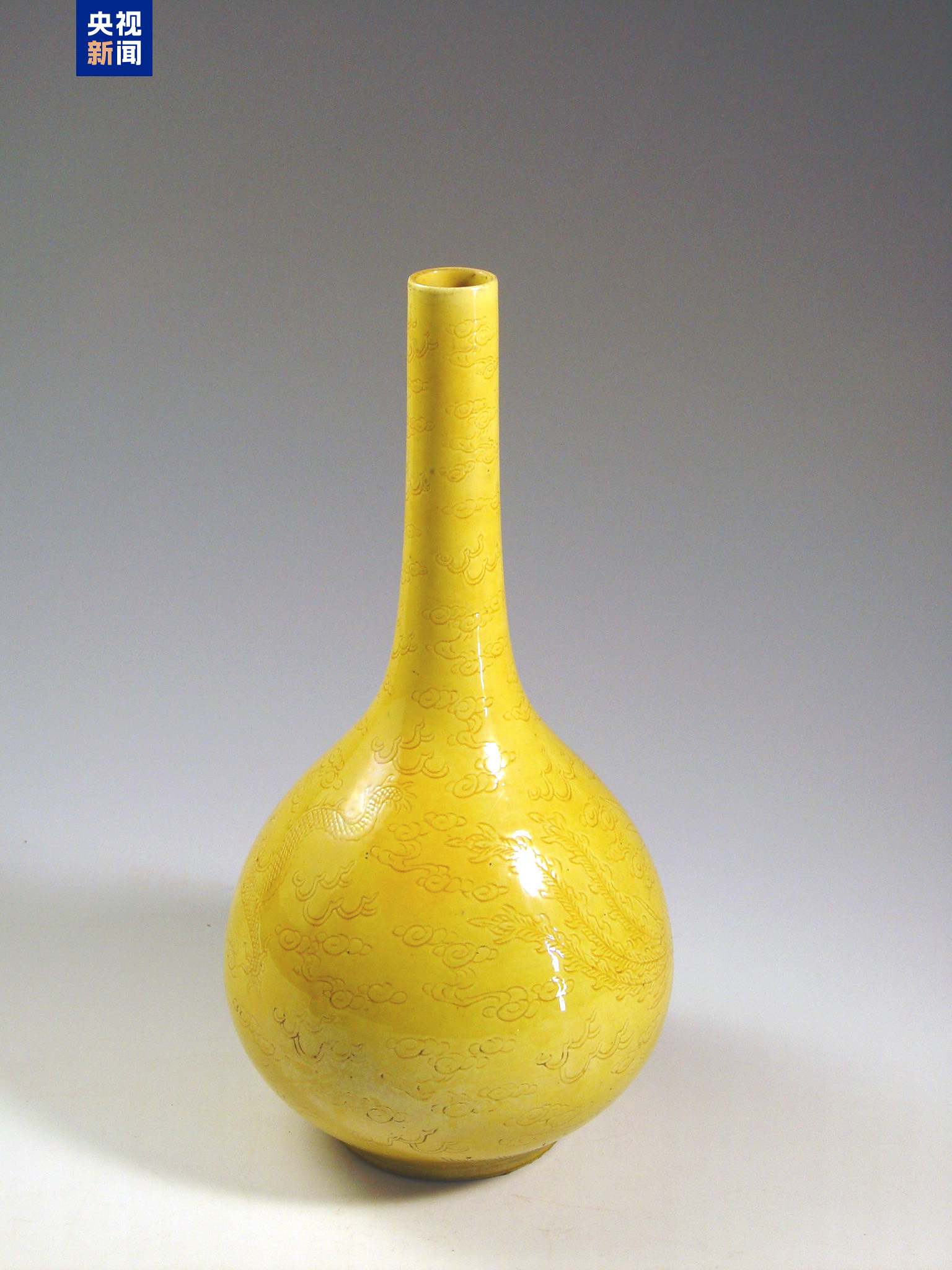△清康熙款黄釉锥把瓶,沈阳故宫博物院藏。
