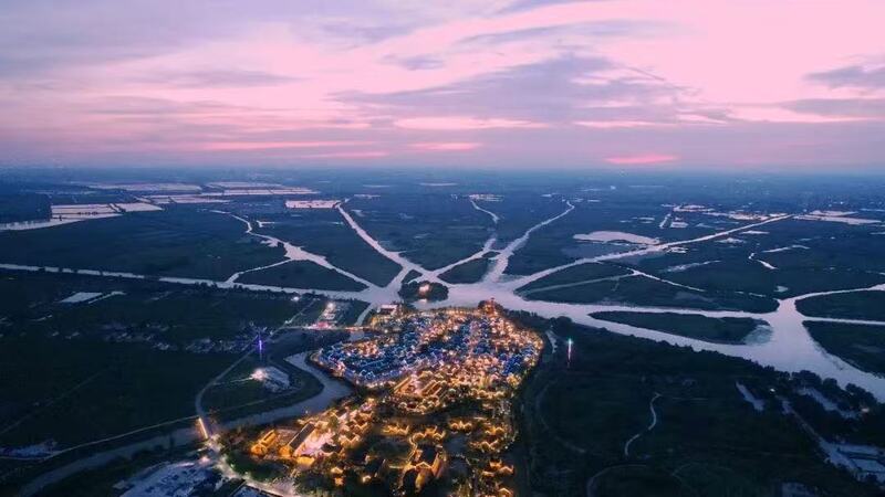 漫步街巷,淮音袅袅,水波漾漾,古戏台上正演绎经典折子戏,婉转唱腔引人驻足;街角广场处,惊险杂技赢得阵阵掌声。九大散点实景演艺与一场水上演艺秀,以沉浸式体验展现淮杂文化的生动魅力。待到暮色四合,万千灯笼次第点亮,整座小镇沉浸于温暖光晕之中。戏韵与烟火在此交融,传统与现代在此对话,展现出盐城水乡既古老又鲜活的生命力。