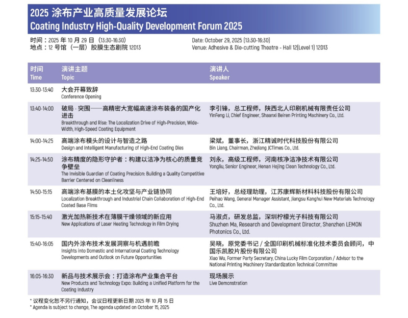 2025 涂布产业高质量发展论坛:分析涂布产业的发展现状与面临的挑战,探讨涂布技术的创新方向与智能化升级路径,交流涂布产业与下游应用领域的协同发展模式,推动涂布产业高质量发展。