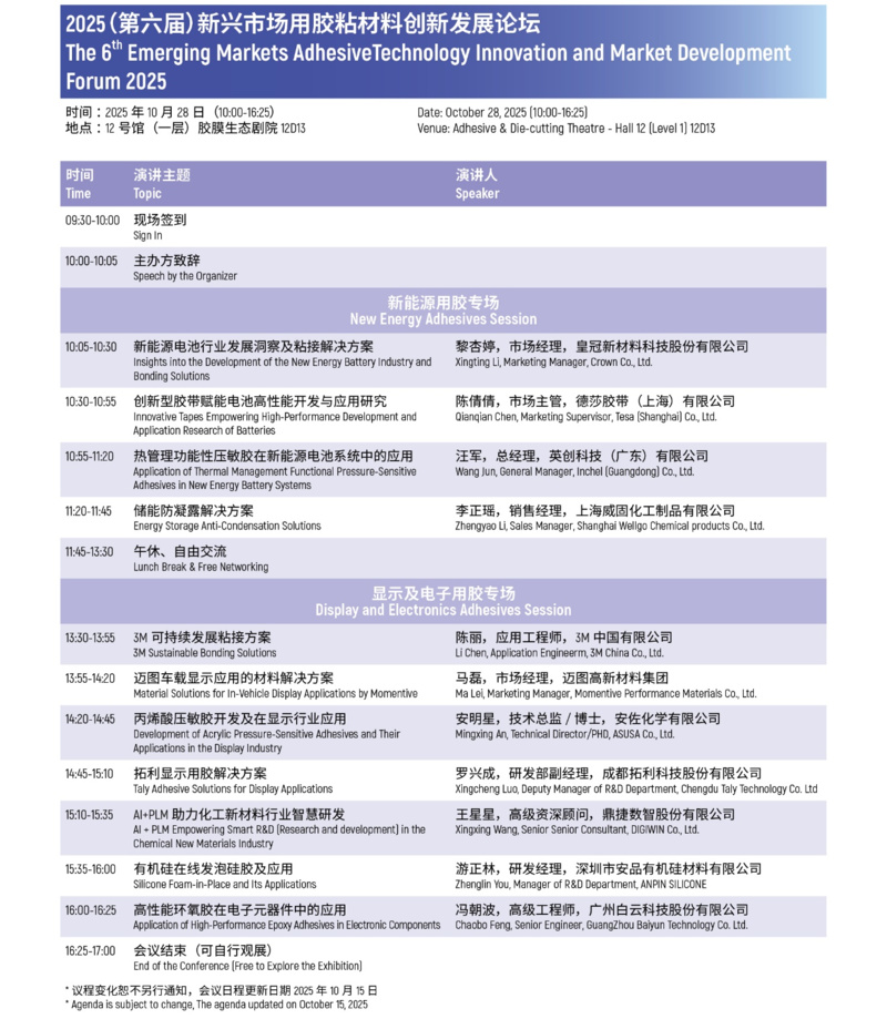 2025(第六届)新兴市场用胶粘材料创新发展论坛:针对一些传统的、中低端以及相对成熟的应用市场成为竞争激烈、利润空间有限的红海市场的现状,为引导和推进中国胶企加速培育、开拓新兴用胶市场以及加速攻关粘接技术中的热点难点问题,分享适配新能源、新型显示等新兴市场的产品创新技术与市场开拓策略,帮助企业拓展新兴市场份额。