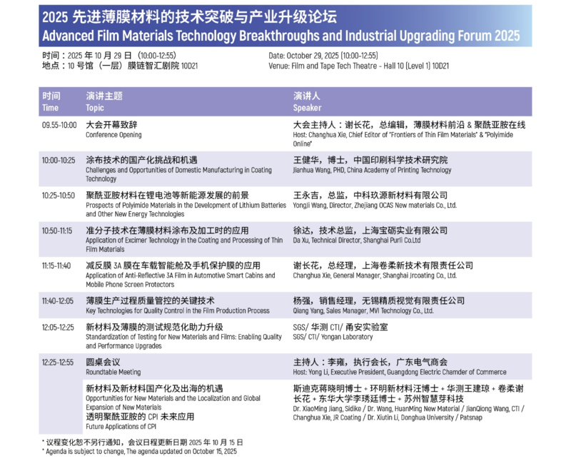2025 先进薄膜材料的技术突破与产业升级论坛:深入探讨新能源锂电池、光学显示膜等先进薄膜材料的技术突破方向,分析产业升级过程中的痛点与解决方案,推动先进薄膜材料产业高质量发展。